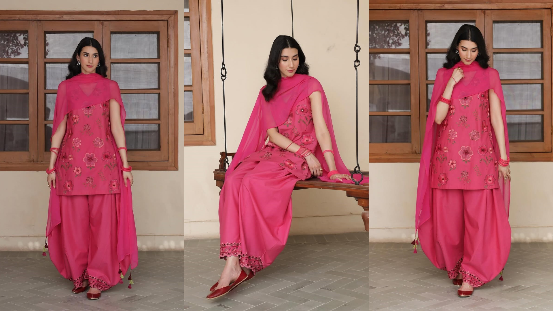 This elegant black 3-piece dress features intricate embroidery, combining delicate floral details with a soft, feminine silhouette for a timeless and sophisticated look. Perfect for any special occasion, it exudes both grace and charm.