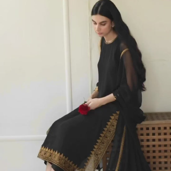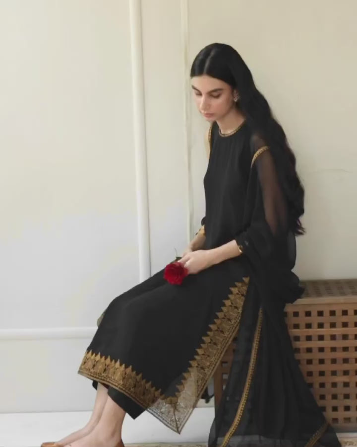 Unleash timeless elegance with our Black Dress, crafted from premium Viscose fabric for unmatched comfort and sophistication. This stunning three-piece ensemble features intricate hand-embroidered detailing, adding a touch of grace and opulence to your wardrobe.