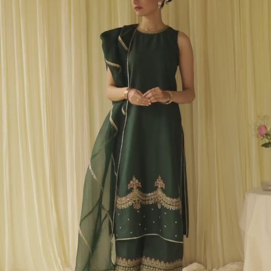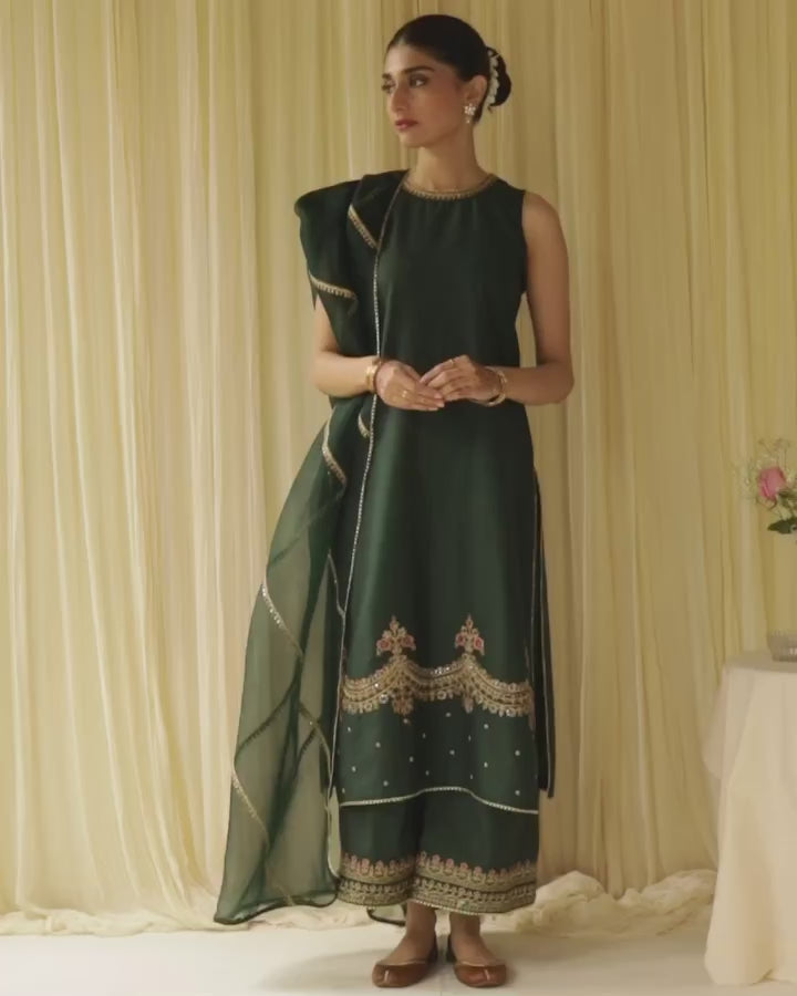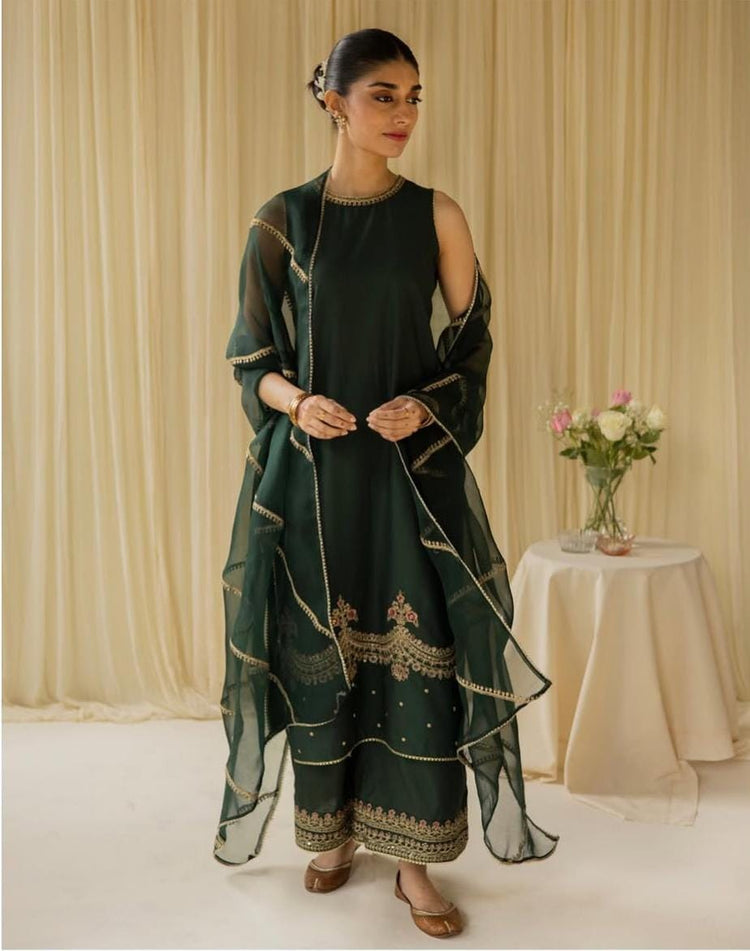 Introducing ZOUQ Fashion's latest summer arrival: a stunning deep green lawn fabric dress, designed with intricate heavy embroidery. Perfectly crafted for the upcoming Eid occasion, this dress combines elegance with comfort, making it the ideal choice for celebrating in style. Don't miss out on this beautiful addition to your wardrobe!
